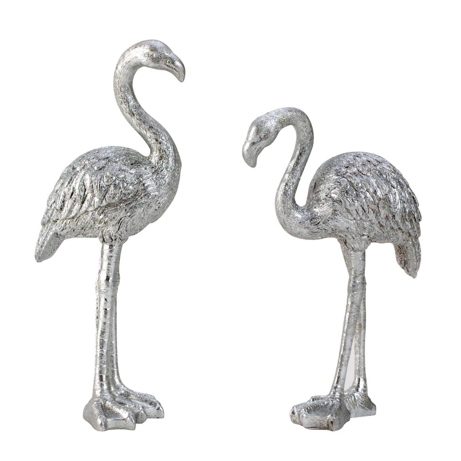 Designer Flamingo 2er SET Höhe 24 cm + 20 cm silberfarben glitzernd