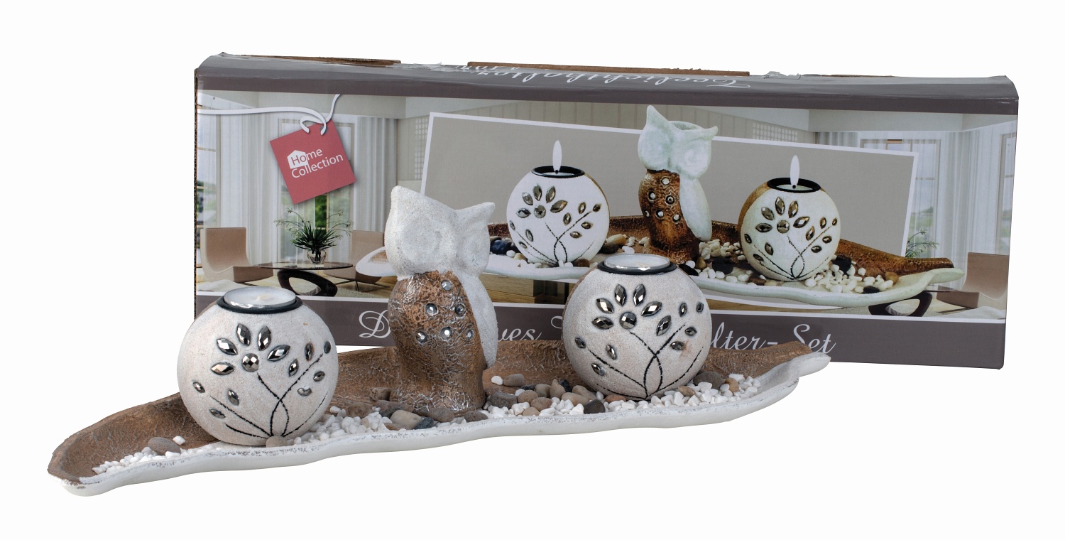 Exklusives Teelichthalter-SET mit Eule Höhe 15,5 cm Länge 51 cm