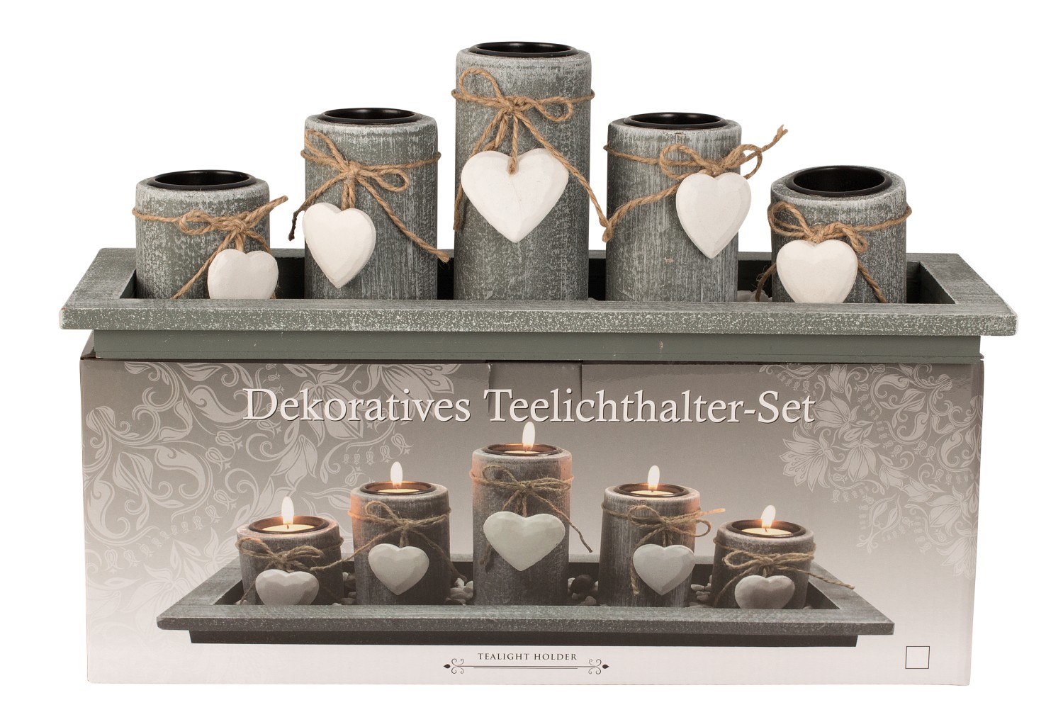 Exklusives Teelichthalter SET Länge 38 cm Höhe 13 cm mit Herzen und Dekoplatte
