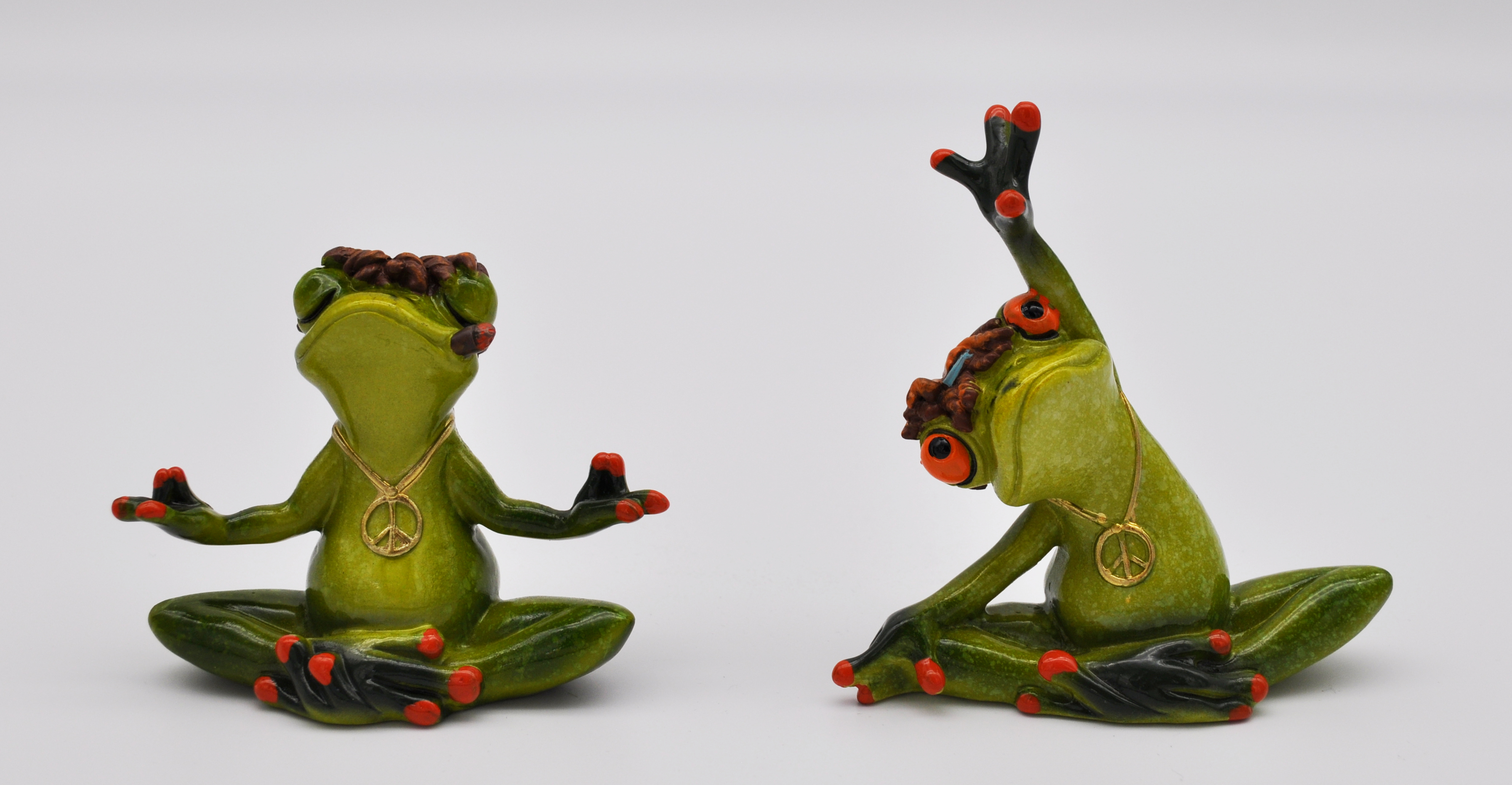 Frosch Yoga Hippie hellgrün 9 - 11 cm Dekofigur Froschfigur Zierfigur
