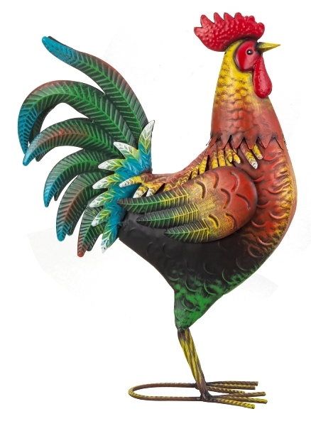 Bringen Sie mit dieser beeindruckenden Metall-Hahn-Skulptur eine lebendige Note von Farbe und Charakter in Ihr Zuhause oder Garten. Diese kunstvoll gefertigte Skulptur aus hochwertigem Metall ist 39 cm hoch und 38 cm breit, und fängt die majestätische Pracht eines Hahns perfekt ein. Die lebhaften Farben und die detailreiche Gestaltung der Federn verleihen der Skulptur eine dynamische Ausstrahlung, die jeden Betrachter begeistert.