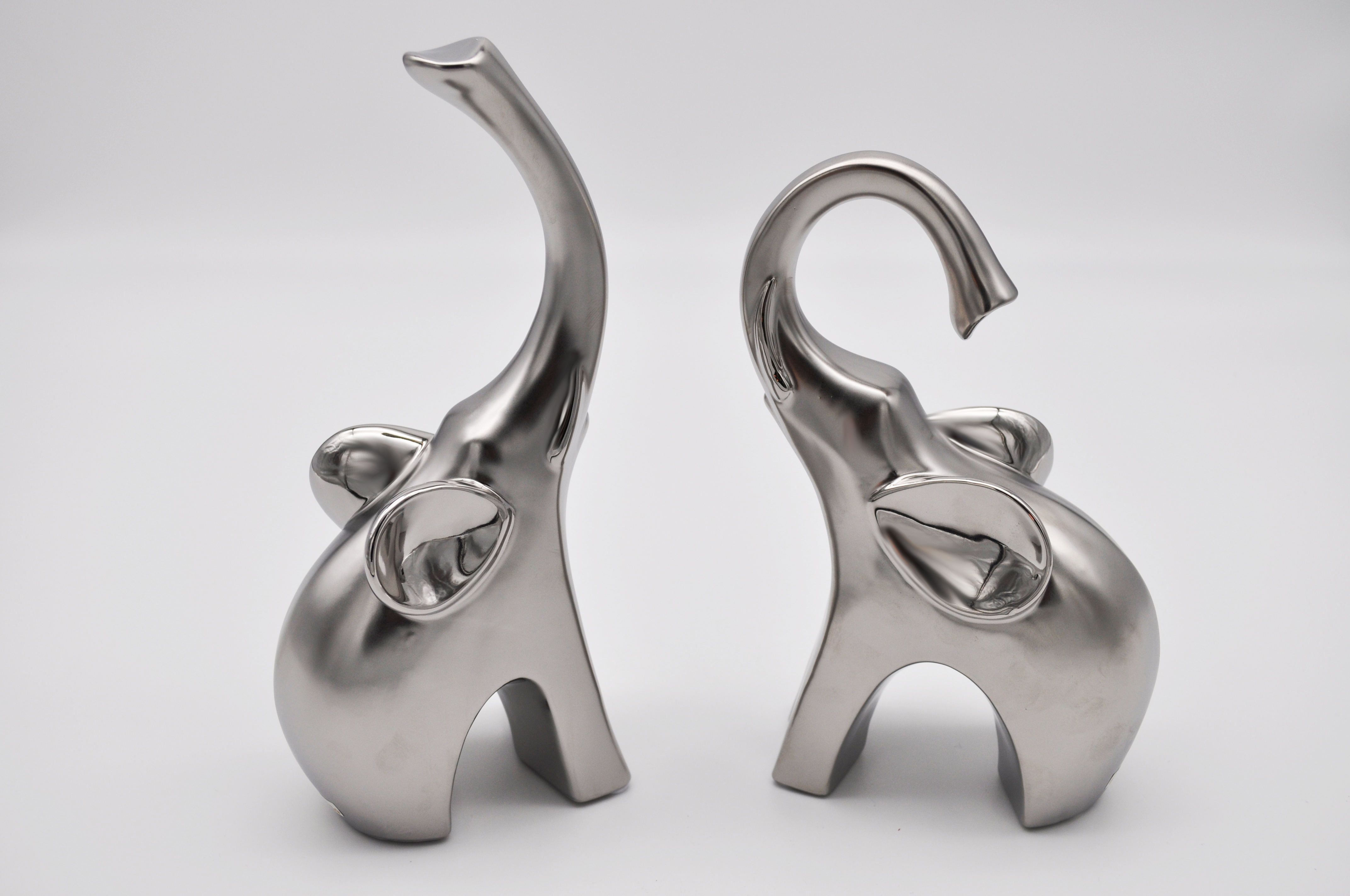 Modernes Elefantenpaar 22 + 25 cm Silbermatt Deko Elefanten Mattsilber Dekoration Afrika 2er SET