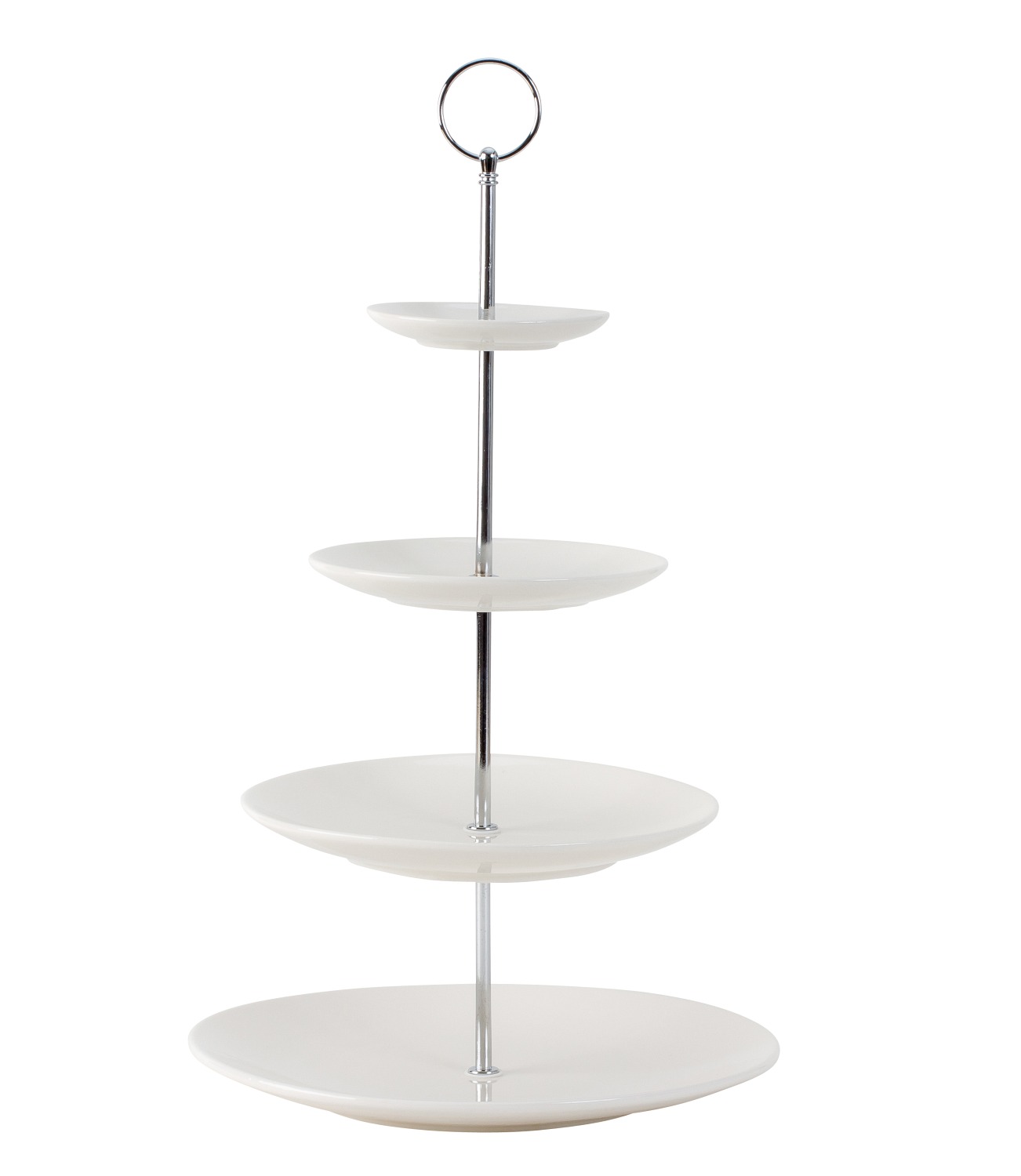 Porzellan Etagere 4-stöckig 45 cm Dekoplatte Obstplatte Servierplatte Silber